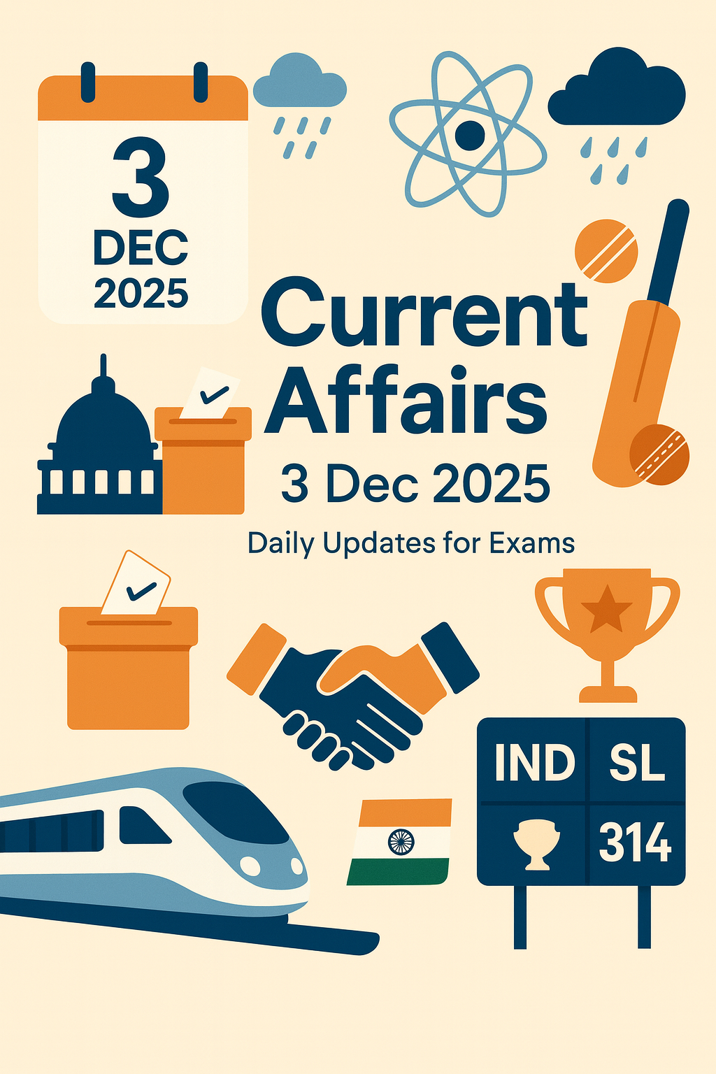 Test your knowledge with today’s top current affairs questions covering politics, economy, science, and sports. Perfect for UPSC, SSC, Banking, Railways, Defence, and State Exams. ...