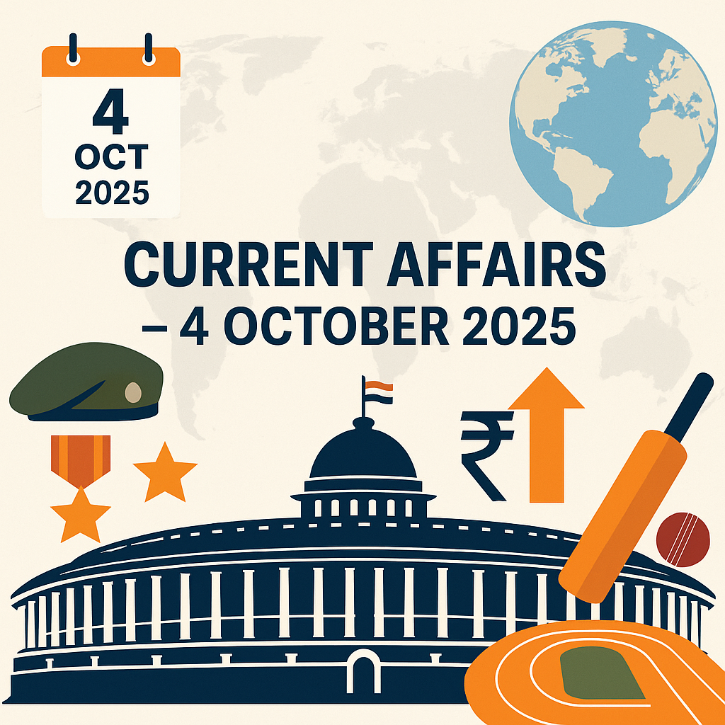 The news of 4 October 2025 reflects India’s growing strength in defence, economy, and sports, alongside global challenges and diplomatic moves. From the Army Chief’s tough words for Pakistan to medal-winning performances at world championships, today’s current affairs are vital for students, professionals, and exam aspirants alike.