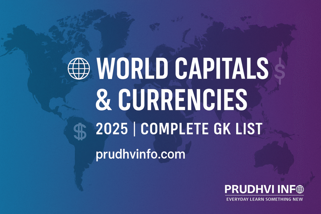 Knowing world capitals and currencies is one of the most important topics in General Knowledge (GK). This subject is frequently asked in competitive exams (UPSC, SSC, Banking, Railways, Defence, State Exams) as well as in interviews and quizzes.